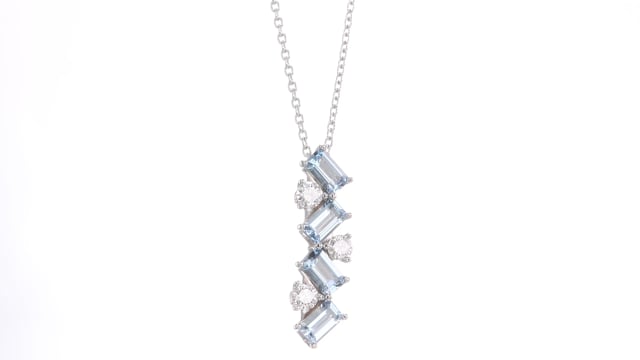 A wonderful aquamarine and diamond pendant, featuring 0.79cts total weight emerald aquamarines. The gemstones are accented by collection color brilliant side stones, and the pendant is mounted in 18K white gold. The pendant is part of the beautiful "Cascade" collection. The appearance of the final product may vary slightly from the images shown. For more information about this item please contact our customer service department.