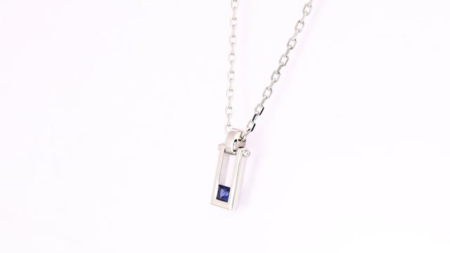 A striking blue sapphire men’s pendant, set in an 18K white gold frame. Showcasing a captivating princess-cut sapphire, the design is elevated by diamond accents on the sides. A perfect balance of strength and elegance. For more information about this item please contact our customer service department.