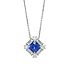 A beautiful blue sapphire and diamond pendant, with a center cushion gemstone weighing 0.92cts. The sapphire is accented by collection color brilliants and baguettes styled in a shared prong halo, and is mounted in 18K white gold. For more information about this item please contact our customer service department.