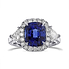 Royal Blue Cushion Sapphire & Triangle Diamond Halo Ring, SKU 578282 (4.42Ct TW)