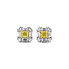 A beautiful pair of fancy intense yellow diamond halo earrings, with a center pair of cushion diamonds weighing total weight 1.01cts. and certified by GIA. The diamonds are accented by collection color brilliants and baguettes, styled in a shared prong halo, and are mounted in 18K white and yellow gold. For more information about this item please contact our customer service department.