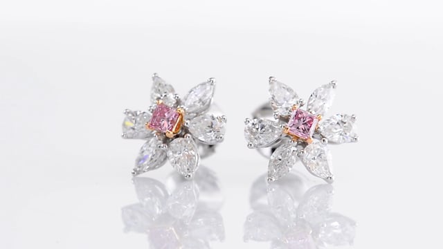 Extraordinary 2.22Ct TW Fancy Intense Purplish Pink princess diamond earrings, with collection colorless pear and marquise diamonds, mounted in 18K white and rose gold. For more information about this item please contact our customer service department.