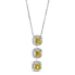 Of grace and elegance.. an extraordinary diamond drop pendant, featuring 3 fancy intense yellow cushion diamonds, total weight 1.57cts. Mounted in 18K white and yellow gold, each diamond is beautifully complimented with collection color brilliants styled in an open pave halo. For more information about this item please contact our customer service department.
