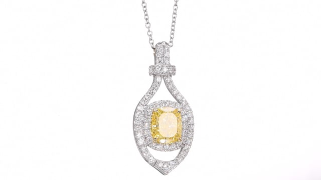 Fancy Intense Yellow Double Halo Diamond Pendant (1.87Ct TW)