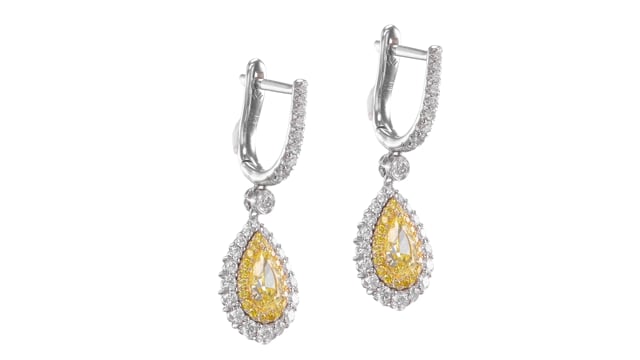 Fancy Intense Yellow Pear Diamond Halo Drop Earrings (2.04Ct TW)