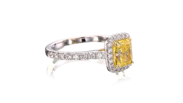 Fancy Intense Yellow Radiant Halo Diamond Ring (1.48Ct TW)