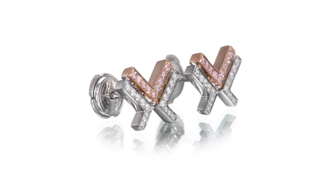 Fancy Pink and White Diamond Leibish Logo Pave Earrings (0.24Ct TW)