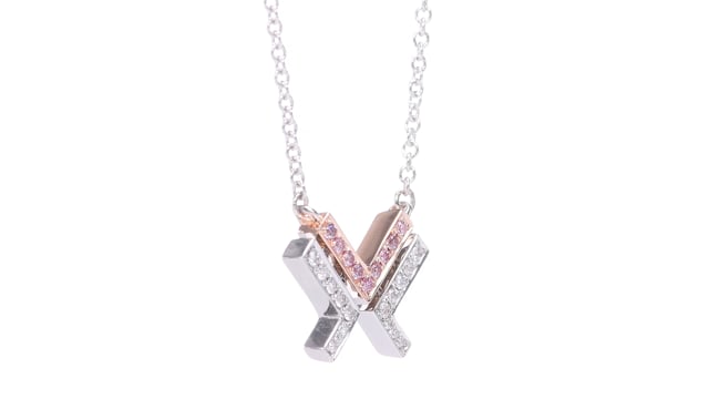 Fancy Pink and White Diamond Leibish Logo Pave Pendant (0.11Ct TW)