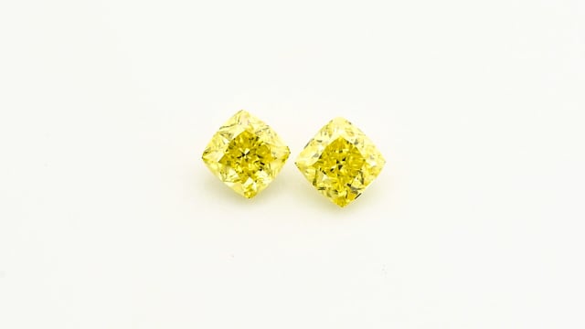 A lovely pair of fancy vivid yellow, cushion diamonds, total weight 0.90cts, with VS1 clarity, certified by GIA. The stones have an amazing sparkle and can be purchased as a loose pair or set as a pair of earrings in a Leibish setting style or custom design. For more information about this item please contact our customer service department.