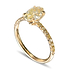 A beautiful Y-Z light yellow oval diamond side stone ring, with a center diamond set in a 4 prong setting, weighing 1.36cts and certified by GIA. The band features open pave fancy yellow brilliants side stones, and the ring is mounted in 18K yellow gold. For more information about this item please contact our customer service department.