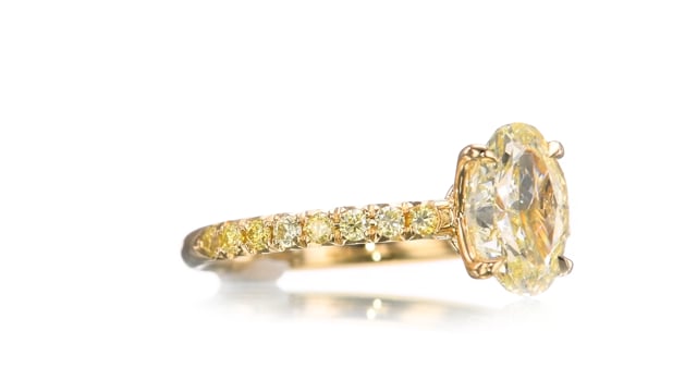 Light Yellow Oval Diamond Side Stones Ring (1.60Ct TW)