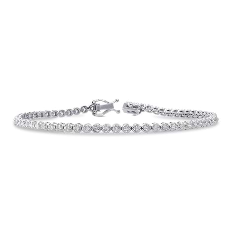 Collection color round white diamond tennis bracelet with 1cts + diamonds styled in a prong setting and mounted in 14K white gold. The appearance of the final product may vary slightly from the images shown. Color and clarity are graded by our in-house GIA GG Graduate Gemologist. For more information about this item please contact our customer service department.