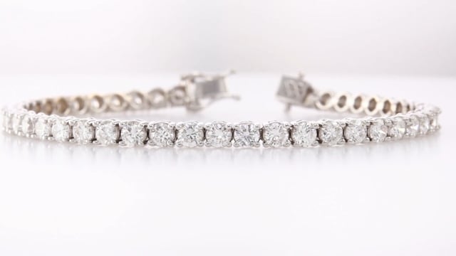 A classic diamond Tennis bracelet with 7cts+ collection color brilliants styled in a prong setting. The bracelet is mounted in 14K white gold. The appearance of the final product may vary slightly from the images shown. Color and clarity are graded by our in-house GIA GG Graduate Gemologist. For more information about this item please contact our customer service department.