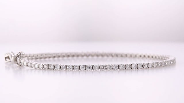 A classic diamond Tennis bracelet with 2cts+ collection color brilliants styled in a prong setting. The bracelet is mounted in 14K white gold. The appearance of the final product may vary slightly from the images shown. Color and clarity are graded by our in-house GIA GG Graduate Gemologist. For more information about this item please contact our customer service department.