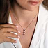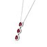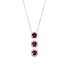 Dropped halo pendant, featuring three cushion rubies and colorless round brilliant diamonds. Mounted in 18K white and rose gold. For more information about this item please contact our customer service department.