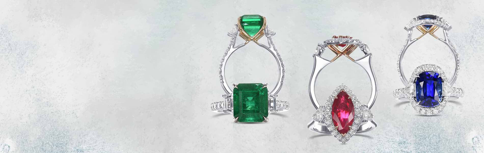 Colombia Emerald & Triangle Diamond Three-stone Halo Ring