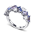 A stylish purple tanzanite and diamond band ring, with emerald shape tanzanites and white diamond brilliants styled in an alternating zigzag motif and mounted in 18K white gold. The ring is part of the Cascade collection. For more information about this item please contact our customer service department.