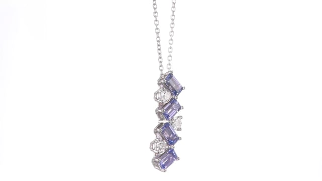 A stylish tanzanite and diamond drop pendant, featuring 1.25cts total weight emerald tanzanites. The gemstones are accented by collection color brilliant side stones, and the pendant is mounted in 18K white gold. The pendant belongs to the Cascade collection. The appearance of the final product may vary slightly from the images shown. For more information about this item please contact our customer service department.